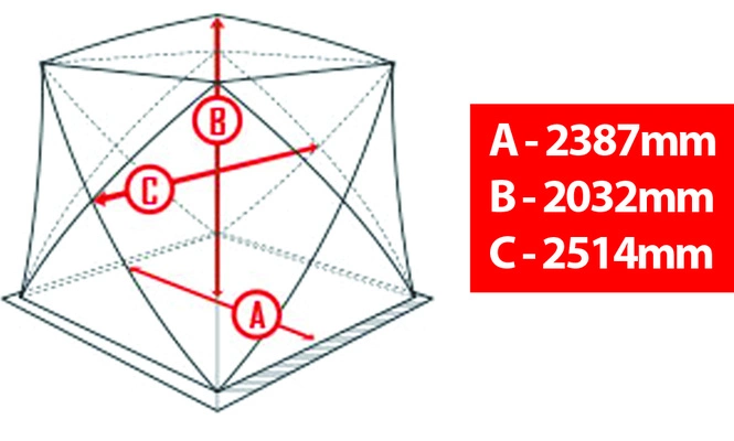 Atemi Teltta Igloo Luxury on valmistettu kestävästä, vedenpitävästä ja lämpöä säästävästä materiaalista. Teltan alaosassa on kehää pitkin lumensuojahelma. Tarranauha-ikkunat, jotka voidaan avata tarvittaessa.Säädettävät tuuletusreiät tuuliventtiilillä. Suuri määrä heijastavia elementtejä. Tarranauhalukko oven kiinnittämiseksi seinän taakse. 238x203x251 cm